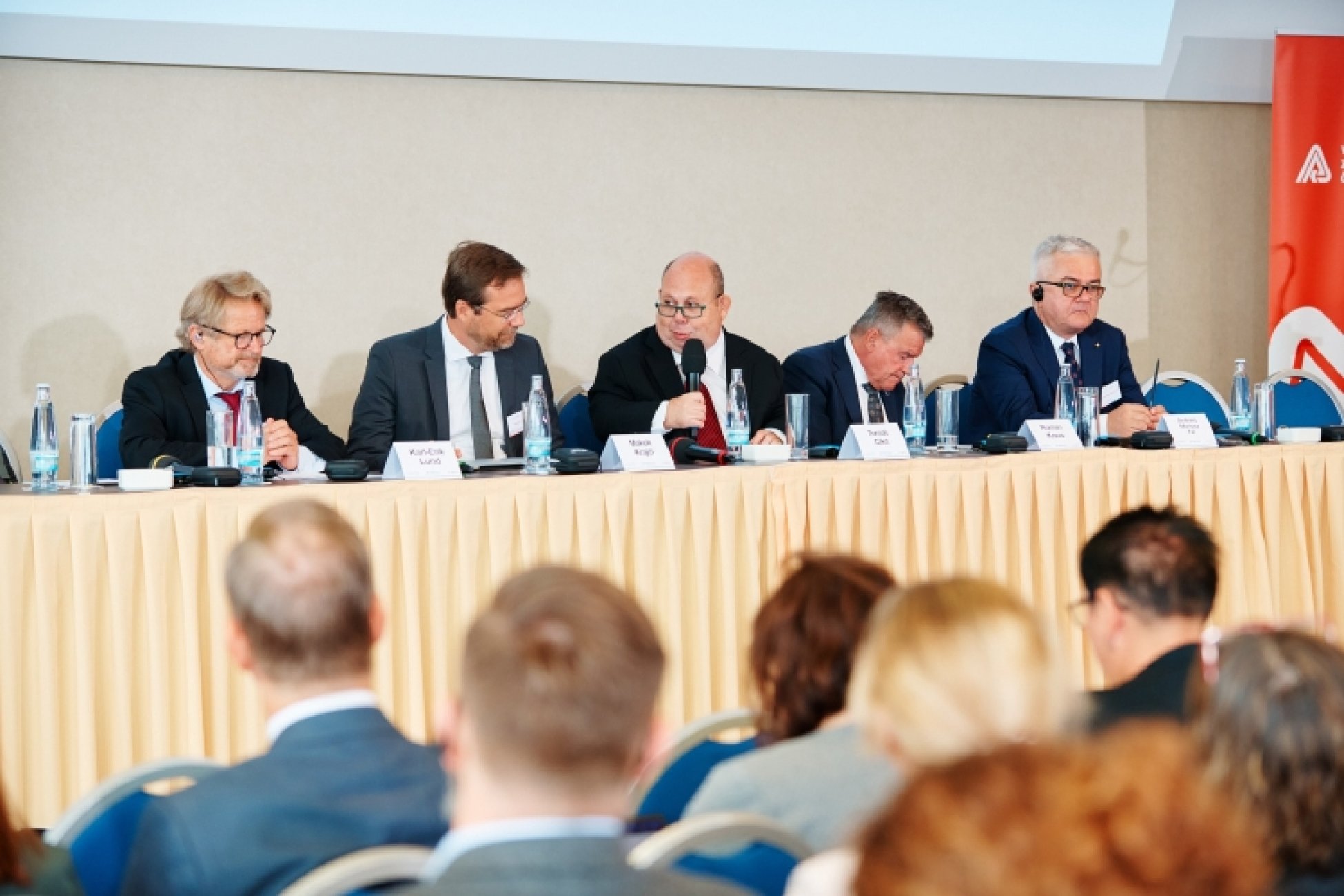 První blok konference Ekonomika prevence. Zleva Karl-Erik Lund, vedoucí výzkumník Norwegian Institute of Public Health, Marek Krajčí, poslanec Národní rady Slovenské republiky, moderátor diskuze a šéfredaktor ZD Tomáš Cikrt, Roman Kraus, senátor Parlamentu ČR, předseda výboru pro zdravotnictví, a Andrzej Mariusz Fal, prezident Polské společnosti pro veřejné zdraví.